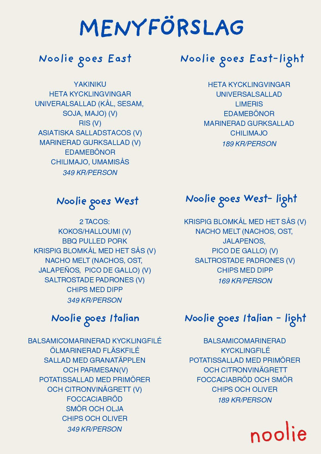 Noolie erbjuder catering till den privata festen såväl som till företagsevenemanget.